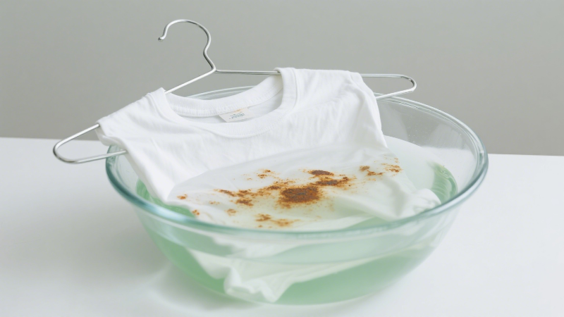 Leke çıkarıcıyı lekeye uygulayın → giysiyi temizleme tozu solüsyonuna iyice batırın.